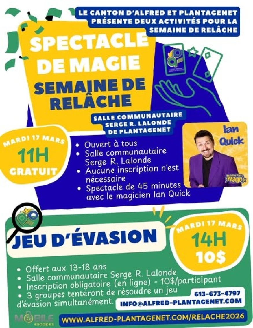 Le Canton d’Alfred et Plantagenet / la semaine de relâche