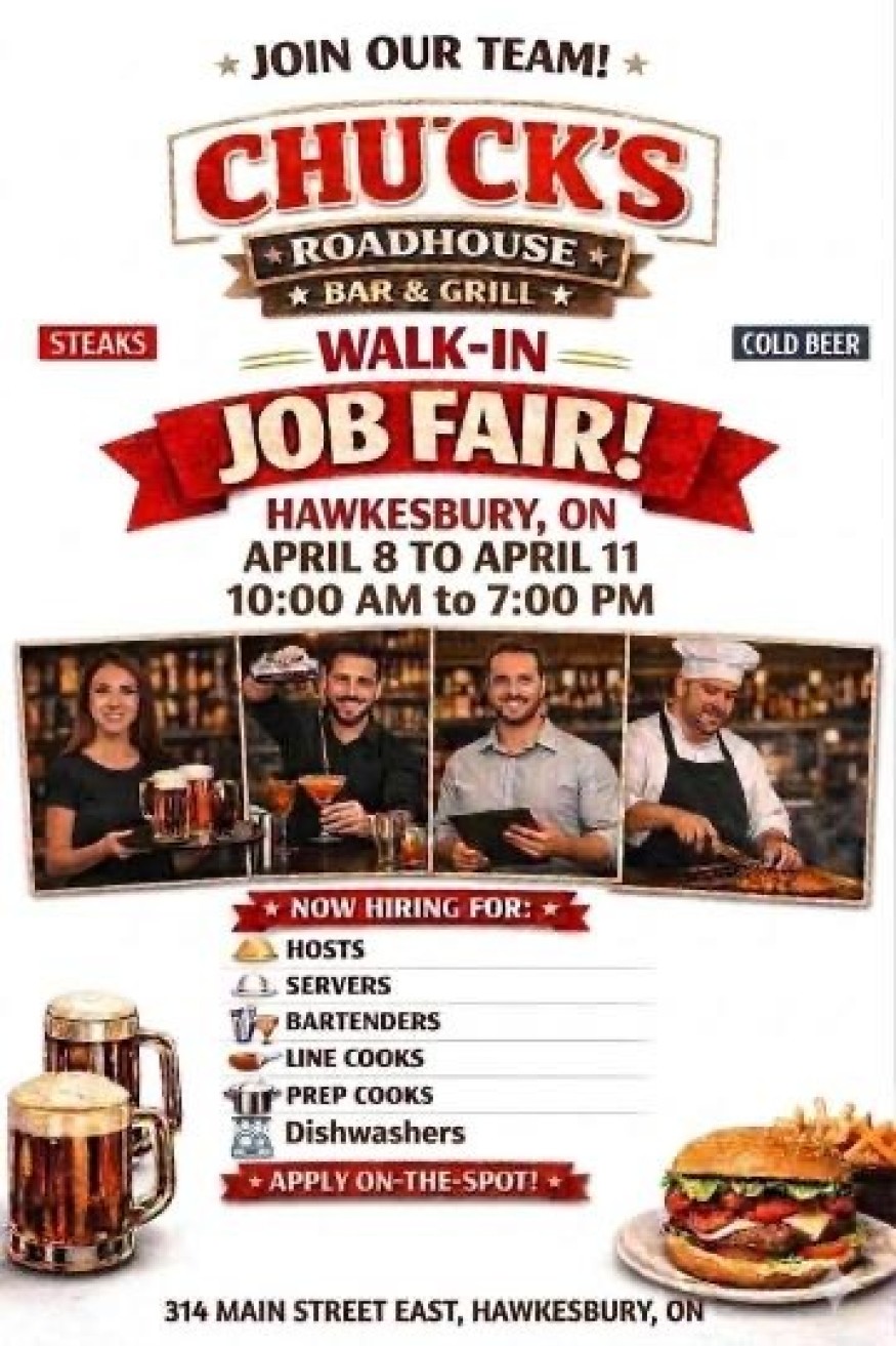 Chuck's Roadhouse Bar & Grill arrive à Hawkesbury… et ils recrutent!