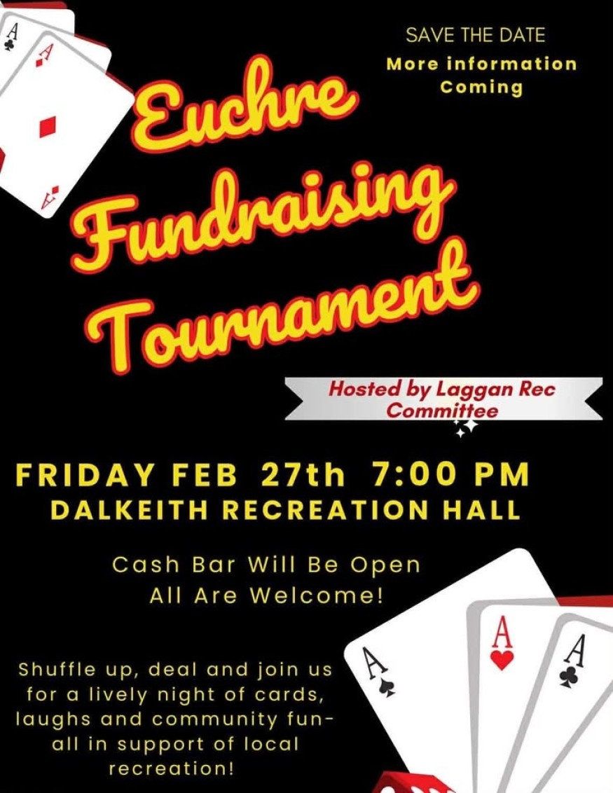 Tournoi-bénéfice de euchre au profit de la Laggan Recreational Association. Plus de détails à venir bientôt!