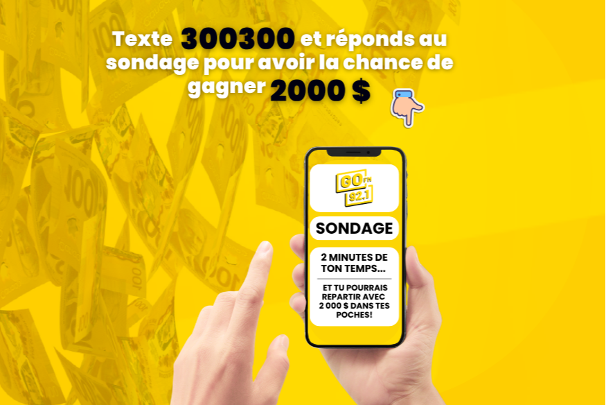 Comment participer :Texte le mot SONDAGE au 300 300 et remplis le court sondage.