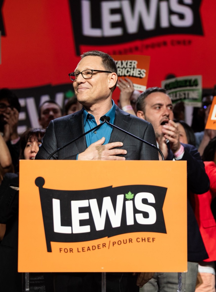 Avi Lewis, était considéré comme le favori face à sa plus proche rivale Heather McPherson. Il adopte une approche plus combative et antisystème, tout en cherchant à rassembler le parti.  Lewis attribue la hausse du coût de la vie à la concentration de la richesse chez les plus riches. Il propose de taxer davantage les riches et de renforcer les services publics. Le NPD ne compte plus que six députés et a perdu son statut officiel.