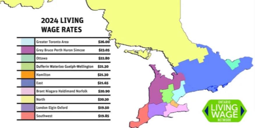 Le salaire de subsistance dans l’Est de l’Ontario atteint 21,65 $ de l’heure, une hausse de 5 % par rapport à 2023, selon le rapport de l’Ontario Living Wage Network. Ce montant dépasse le salaire minimum actuel de 17,20 $/h. Les coûts du logement et de la nourriture sont les principaux facteurs de cette augmentation. Le rapport inclut d'autres dépenses comme le transport et les communications, ainsi que des avantages sociaux. Ce rapport a d’ailleurs été bien accueilli par le Centre d'aide de SDG qui souligne qu’il est impératif que les travailleurs puissent couvrir leurs besoins essentiels.