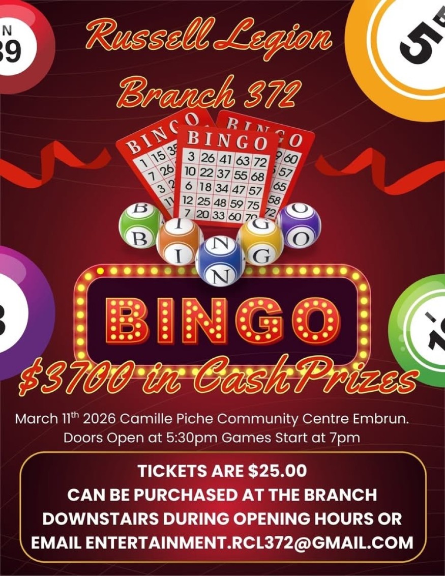 Rassemblez votre gang de bingo, apportez vos marqueurs et préparez-vous pour une soirée remplie de prix, de rires et de la belle ambiance communautaire de la Légion. Que vous soyez un habitué ou que ce soit votre premier bingo, vous allez passer une super soirée.