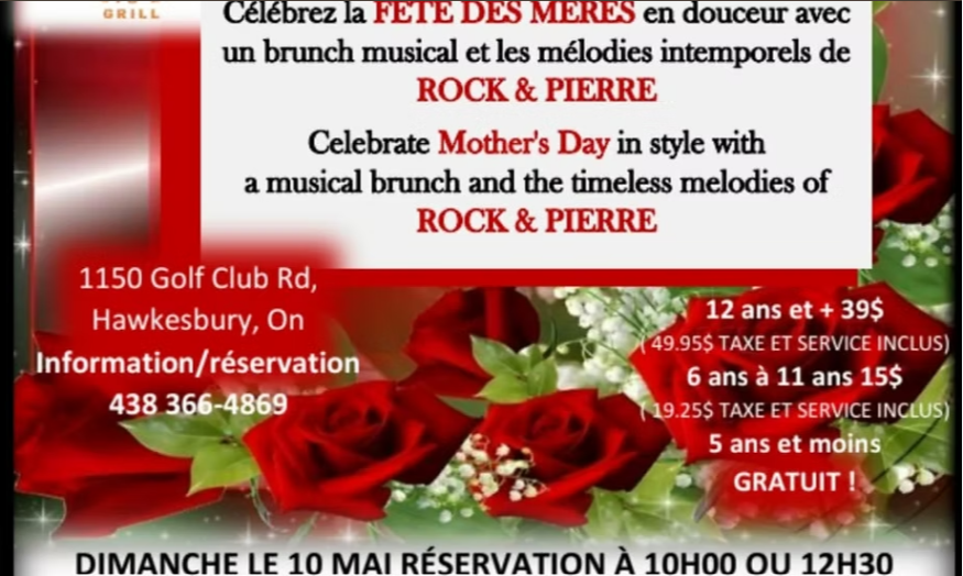 Brunch de la Fêtes des Mères Venez fêter maman le 10 mai avec le duo Rock et Pierre
