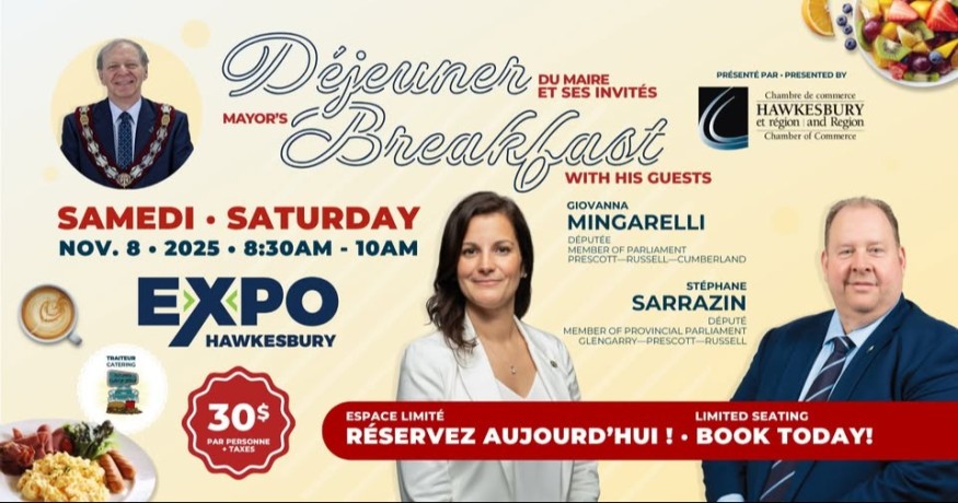 Inscription obligatoire: https://www.hawkesburycommerce.ca/.../mayors-breakfast