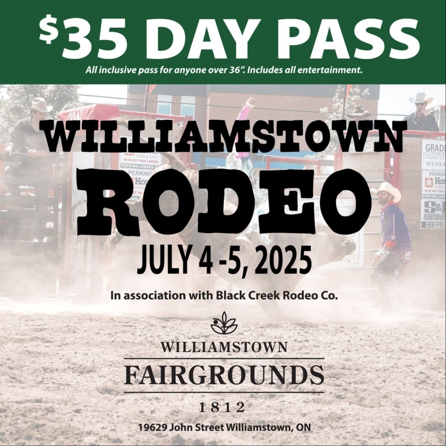 Détails de l’événementOuverture des portes : 16 hDébut du rodéo : 19 hLes places sont limitées – arrivez tôt !Il est fortement recommandé d’acheter vos billets en ligne : store.williamstownfair.ca