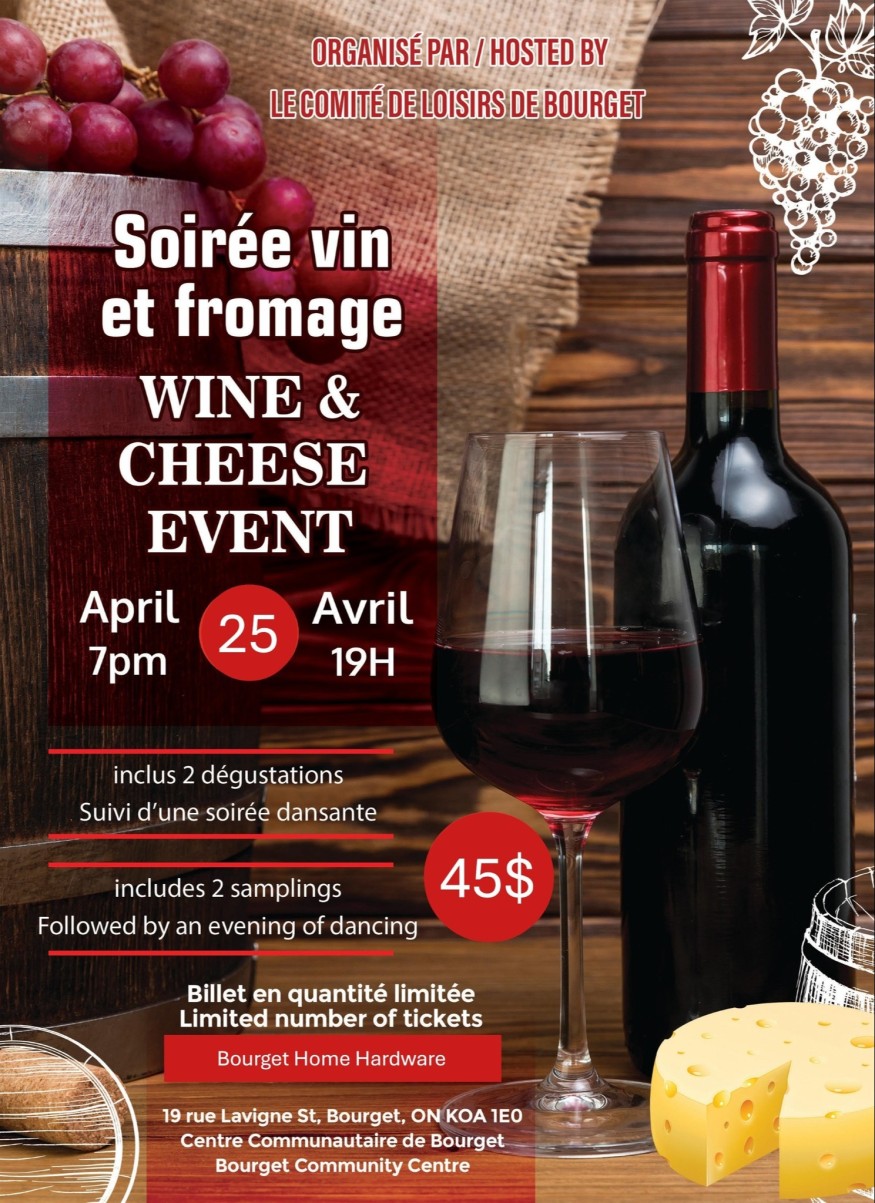 Le Comité des loisirs de Bourget est de retour avec ses populaires soirées Vin et Fromage.