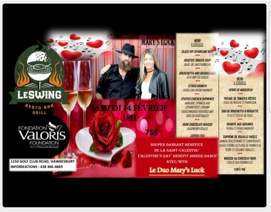 Le samedi 14 février, célébrez la Saint-Valentin, avec Le Swing resto bar grill à Hawkesbury.