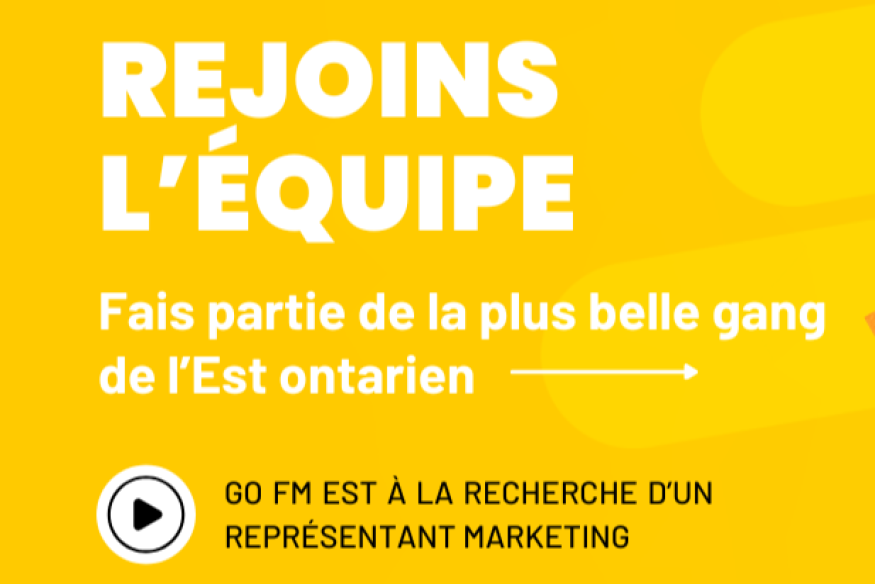GO-FM et BIG-FM sont à la recherche de deux représentant(e)s des ventes dynamiques, et ce, dès maintenant. Les incontournables : Bilingue parfait (français et anglais – on sait, ça va de soi… mais on préfère le dire quand même) Expérience en vente (idéalement en pub radio, mais on est ouverts) Transport fiable (oui, t’as besoin d’une auto… une Lada, ça marche pas) À l’aise avec l’ordi (plus que juste “je sais comment l’allumer”) Habiter ou être prêt(e) à déménager dans l’Est ontarien Porter de la......