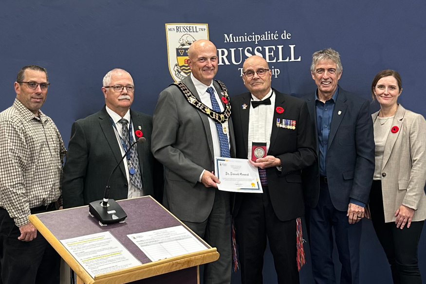 Gabrielle Vinette IJL-Réseau-Presse-Reflet gabrielle.vinette@eap.on.ca Le conseil de la municipalité de Russell a remis un prix de reconnaissance au Dr Darrell Menard pour souligner ses services et son dévouement envers les résidents de la communauté de Russell. Le Dr Menard est devenu une figure essentielle à Russell grâce à son travail en tant que médecin et leader communautaire, ayant un impact positif à la fois dans la communauté et dans le monde entier. « J'aime vraiment cette communauté », a déclaré le Dr Menard. « C'est pourquoi recevoir un prix pour son......
