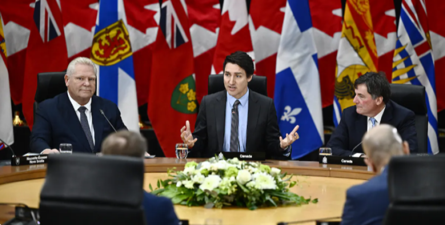 Le premier ministre Justin Trudeau, accompagné des premiers ministres provinciaux, a déclaré en point de presse hier qu’aucune mesure de riposte contre les menaces de tarifs douaniers de Donald Trump ne serait prise tant que ces menaces ne deviendront pas officielles. Bien que cela soit probable, Trudeau insiste sur une réponse équitable si des mesures s’avéraient nécessaires. Les premiers ministres s'accordent pour partager le fardeau à travers le pays sans désavantager une province en particulier.